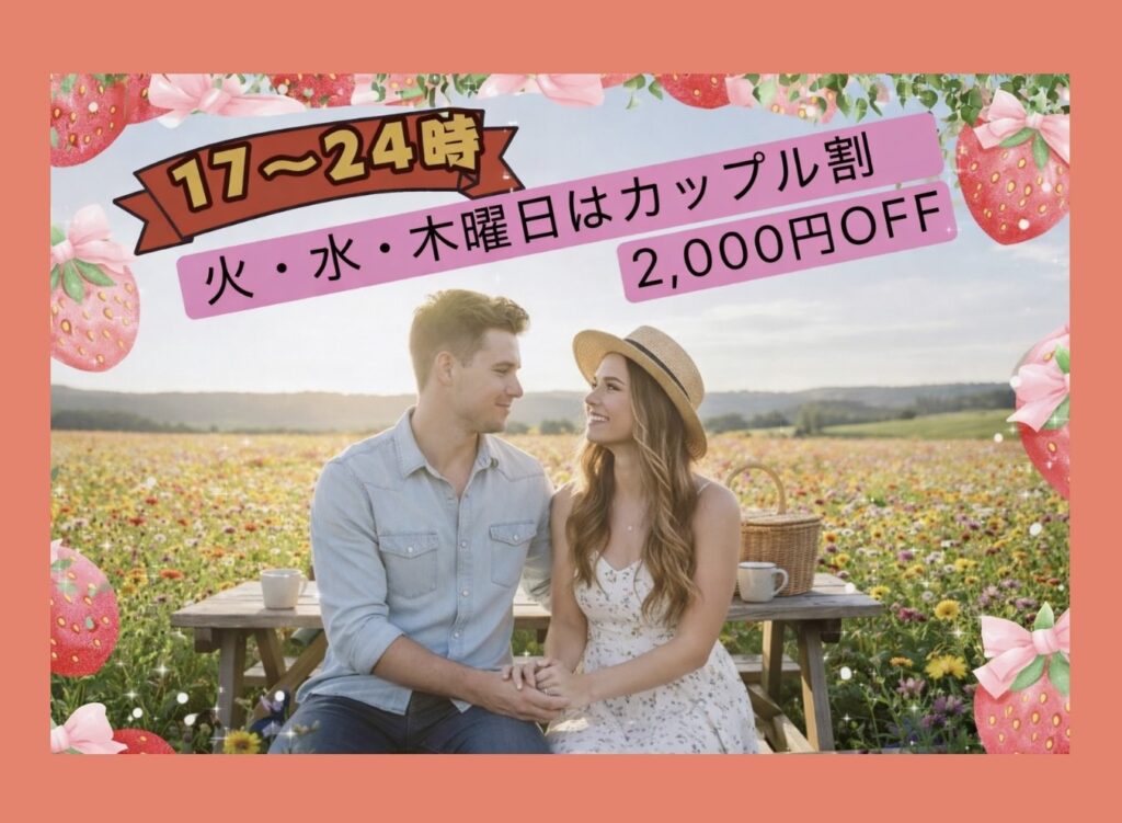 火・水・木曜日17~24時はカップル割2,000円OFF